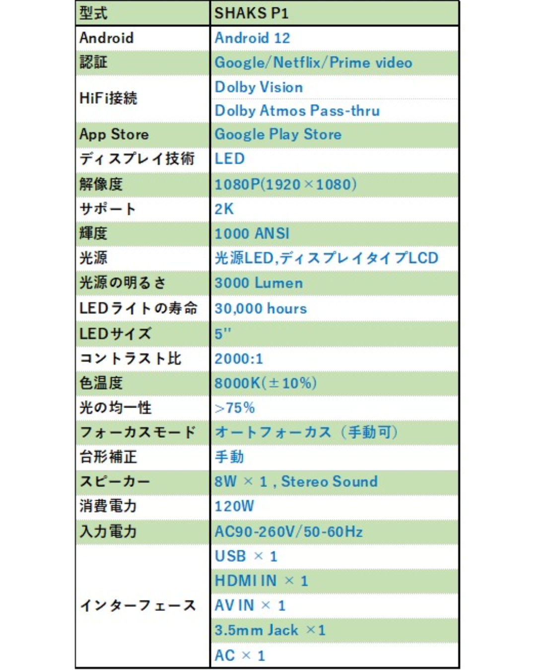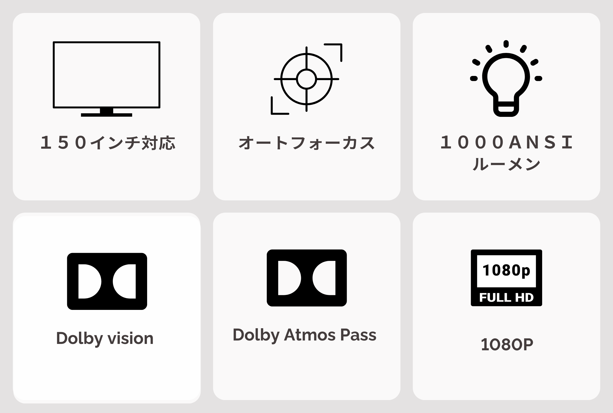 1080P、150インチ対応、1000ANSIルーメン等